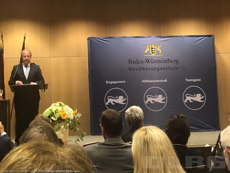 Das Bevölkerungsschutz-Ehrenzeichen wurde auch 2019 wieder an Preisträgerinnen und Preisträger verliehen, die sich in besonderer Weise um den Bevölkerungsschutz in Baden-Württemberg verdient gemacht. Innenstaatssekretär Wilfried Klenk MdL betonte: „Der Schutz der Bevölkerung ist bei unseren Hilfsorganisationen in guten Händen.“